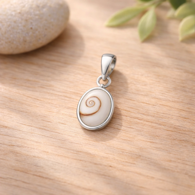 Inspiré par la collection Océane, ce pendentif révèle la beauté naturelle d’un véritable œil de Sainte-Lucie, délicatement serti dans un argent 925 à la finition brillante. Sa bélière classique permet de le glisser facilement sur votre chaîne préférée, pour un porté léger, lumineux, et terriblement facile à assortir.