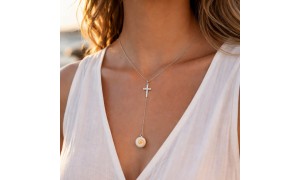 41,58 €Collier Arg 92.5 orné d'un œil de sainte Lucie méditerranéen et d'une croix argent.