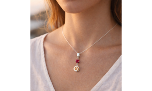 29,08 €Collier en argent 92.5 et perles en pierre de Rubis avec un œil de sainte Lucie du pacifique.