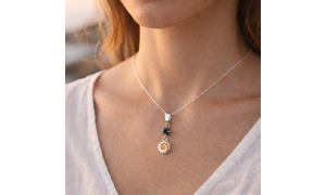 29,08 €Collier argent et perles en pierre d'onyx avec un œil de sainte Lucie du pacifique.