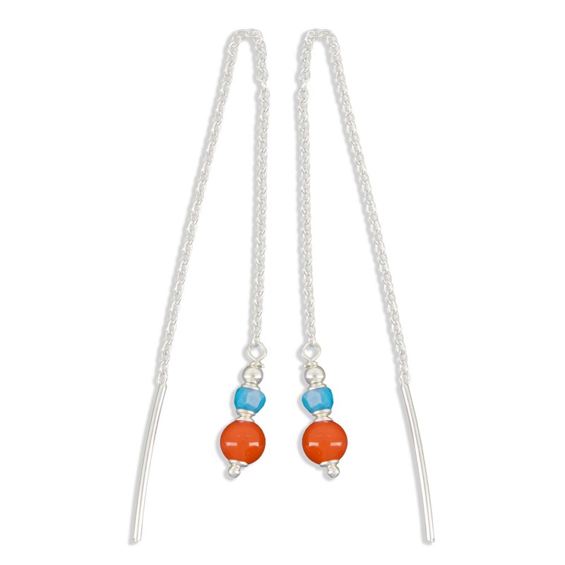 Épurées et délicates, ces boucles d’oreilles à chaînes traversantes en argent 925 jouent avec le mouvement et la légèreté. Leur silhouette élancée révèle l’éclat naturel d’une perle de corail, sublimée par la fraîcheur minérale d’une pierre turquoise, dans un équilibre subtil entre intensité et douceur.