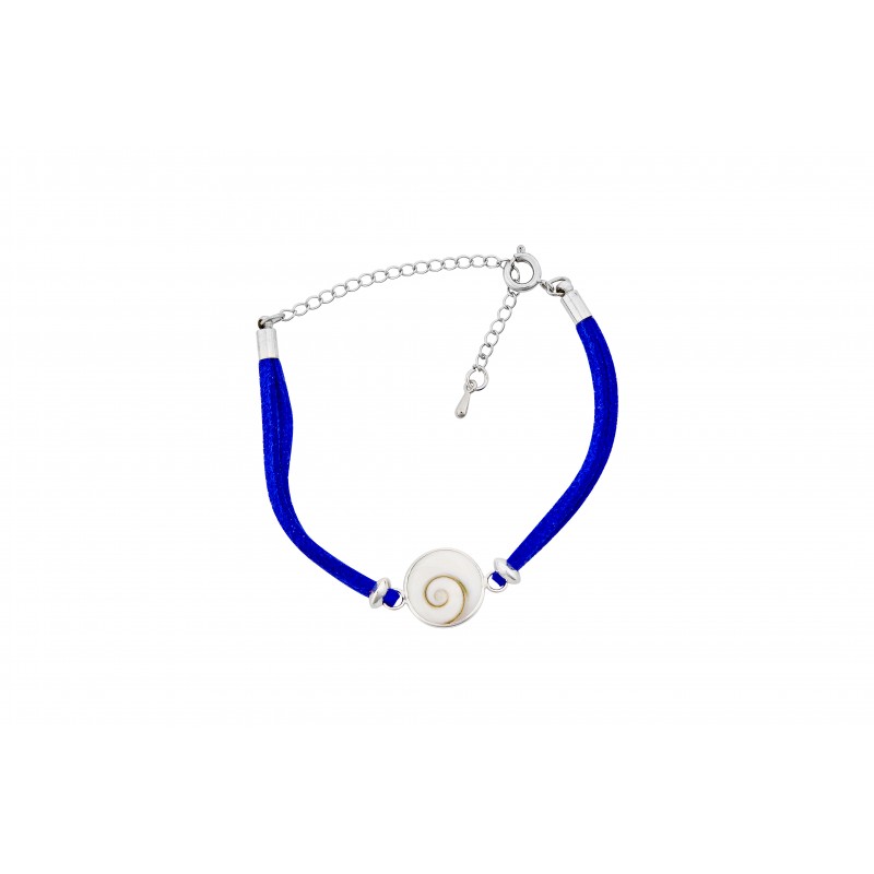 Ce bracelet cordon bleu décoré d’un œil de Sainte-Lucie pacifique est un bijou porte-bonheur inspiré de la Méditerranée.