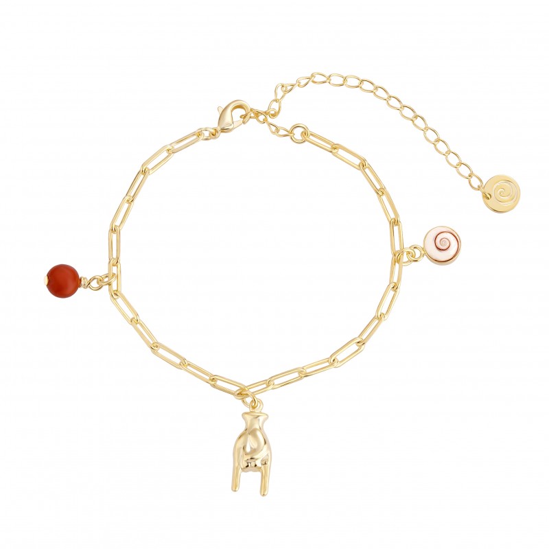 Bracelet doré maillons – Œil de Sainte-Lucie, corail & main corne - POSBC247BISMEDI
