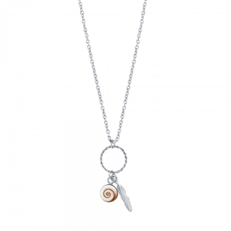 Collier Argenté avec Œil de Sainte Lucie Méditerranéen & Plume – COLLIER011MEDI-ARG