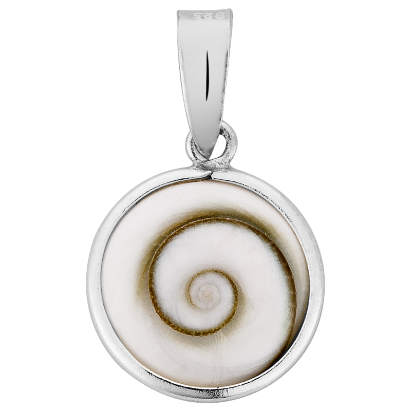 Minimaliste et lumineux, ce pendentif en argent 925 met en valeur un œil du Pacifique (œil de Shiva) aux reflets blanc nacré et aux nuances brunes naturelles. Son format délicat (œil Ø 1 cm, longueur totale 1,5 cm) en fait une pièce légère, facile à porter au quotidien, seule ou en accumulation.