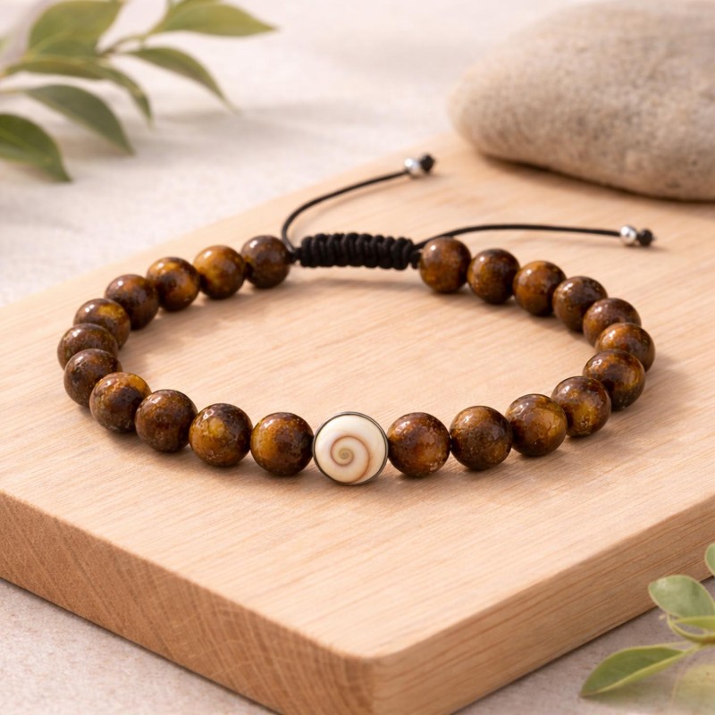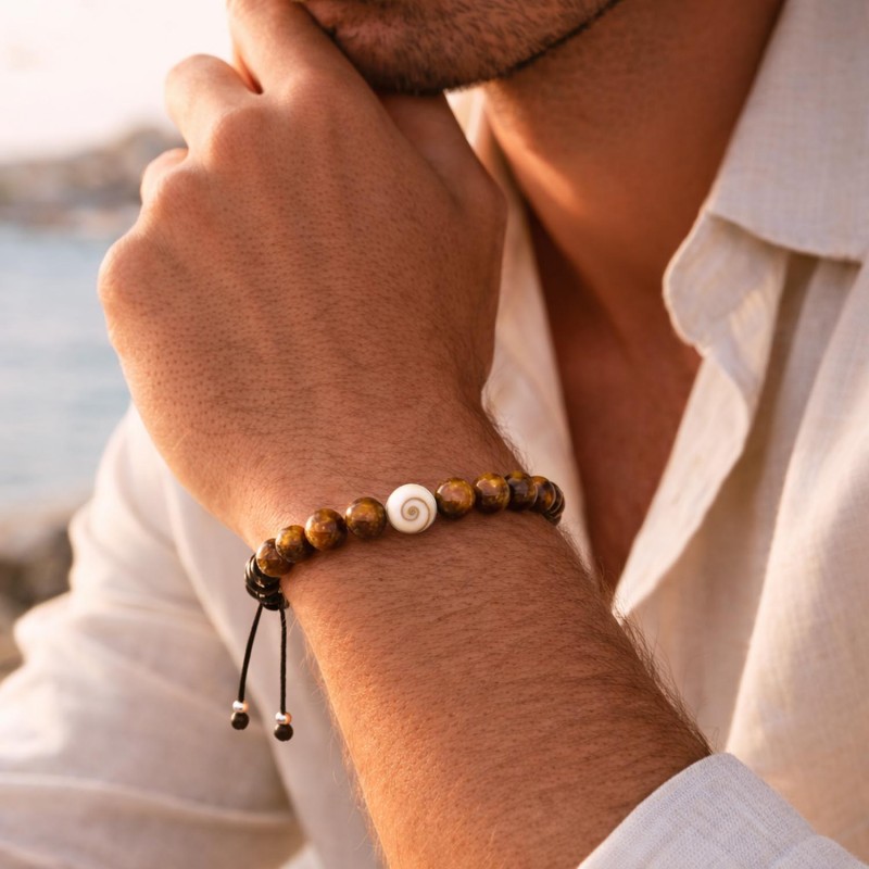 Monté sur un cordon tressé résistant, il se règle facilement pour s’adapter à tous les poignets. Les perles d’œil de tigre, brillantes et chaleureuses, créent un rendu masculin et naturel, parfait pour un look quotidien ou méditerranéen.