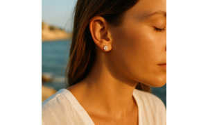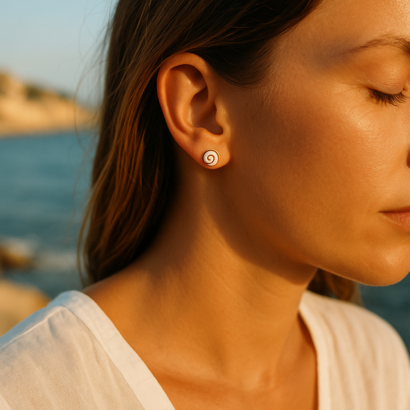Avec leur tige et poussette papillon, elles offrent un maintien sûr et un confort au quotidien. La finition brillante de l’argent souligne l’éclat naturel de l’œil de Sainte Lucie, porté comme un porte-bonheur et un symbole de protection — un petit fragment de lumière, inspiré par les rivages méditerranéens.