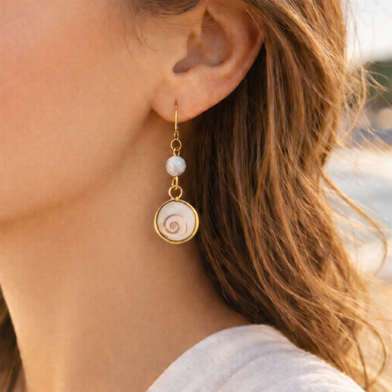 Rentrez dans le monde des rêves avec ces boucles d'oreilles dorés à l'or fin, ornées d'un œil de sainte Lucie et de son agate blanche !
