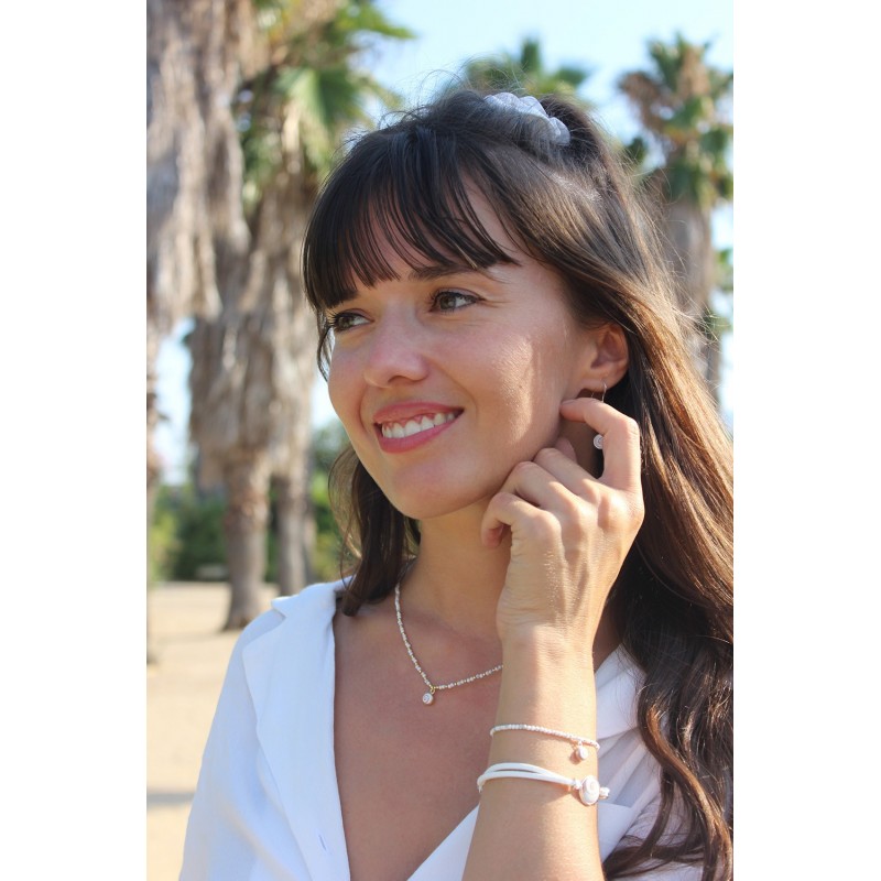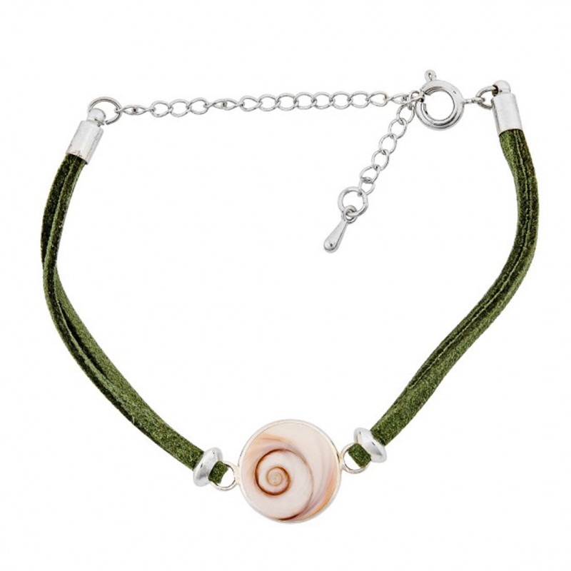 Bracelet orné d’un véritable œil de Sainte Lucie monté sur un cordon en suédine. Élégant, naturel et chargé de symbolique, ce bijou méditerranéen est un porte-bonheur intemporel, parfait à porter au quotidien.. Existant en 2 couleurs : kaki et blanc.