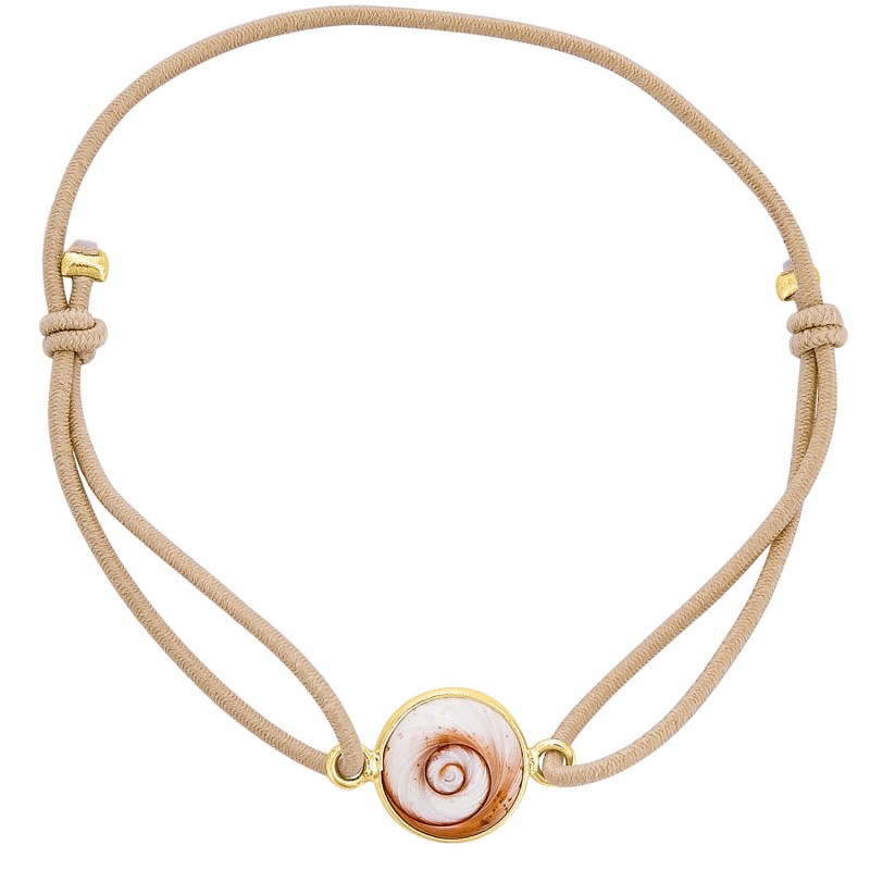 Très en Vogue cet été ce bracelet au cordon élastique de couleurs est orné d'un œil de Sainte-Lucie de méditerranée de forme ronde doré à l'or fin