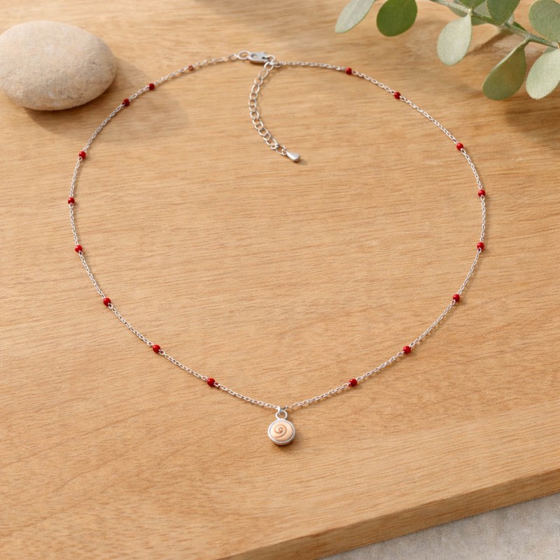 Collier en argent 92.5 orné de perles de Rubis avec un œil de sainte Lucie Méditerranéen.
