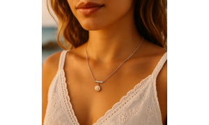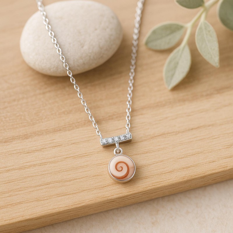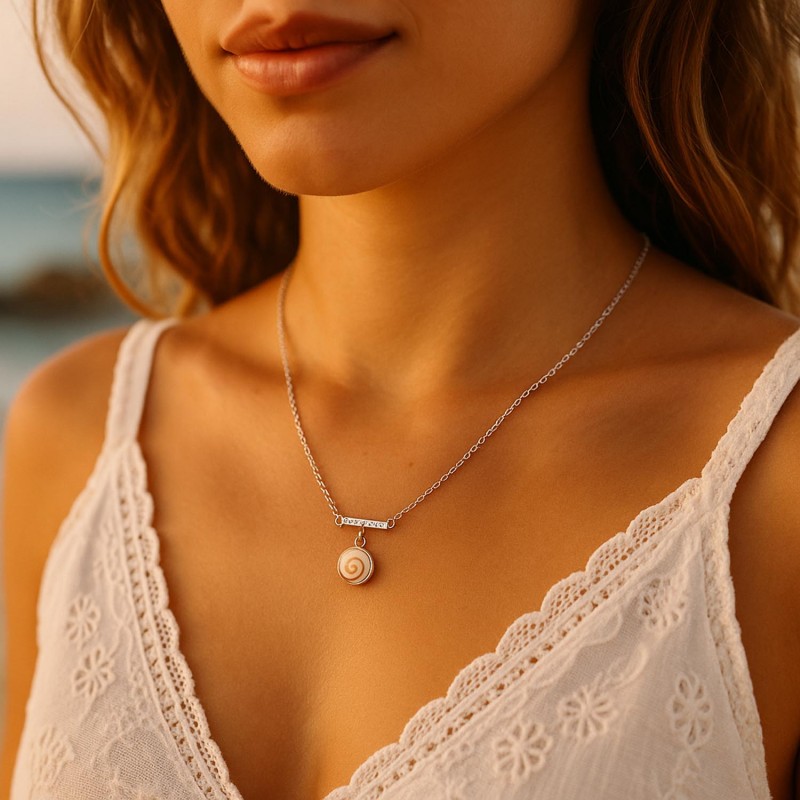 Ce collier en argent 925 associe la pureté d’une chaîne fine à la douceur lumineuse d’un véritable Œil de Sainte-Lucie. Suspendu sous une élégante barre sertie de cinq zircons, il dévoile un éclat discret, comme un rayon de lumière caressant la surface de la mer. Sa silhouette raffinée et féminine en fait un bijou pensé pour accompagner chaque instant, du quotidien aux moments précieux.