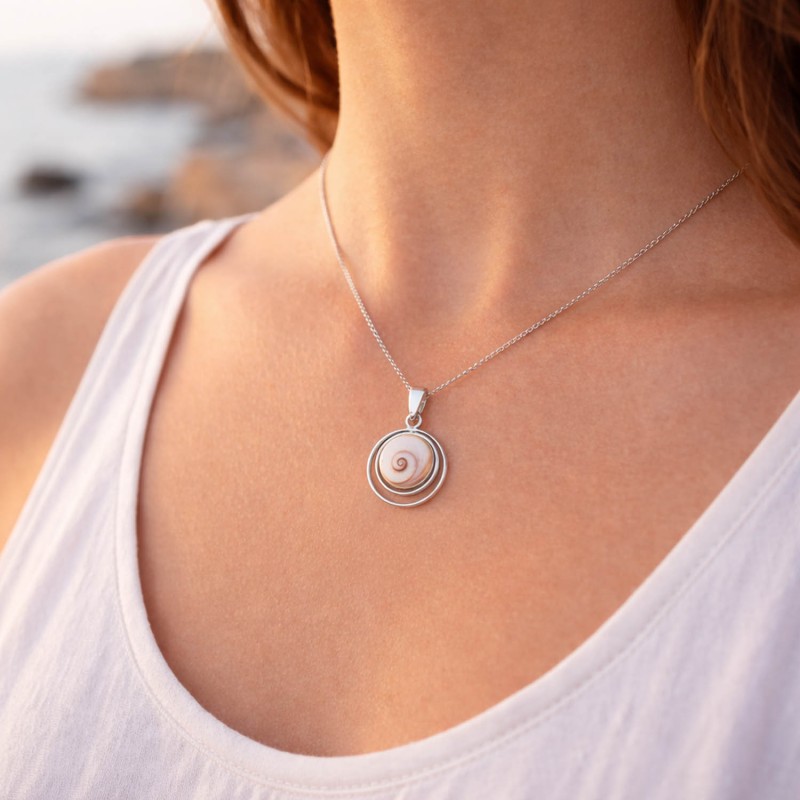 Oeil de sainte Lucie méditerranéen monté sur un pendentif en argent de forme ronde