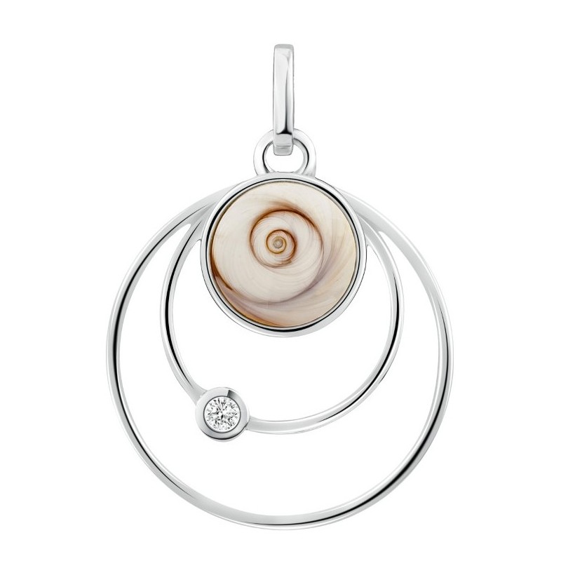 Pendentif en Argent 92,5 composé d'un cabochon orné d'un œil de Sainte Lucie Méditerranéen, lui même entouré de deux anneaux d'argent dont 1 avec un strass !