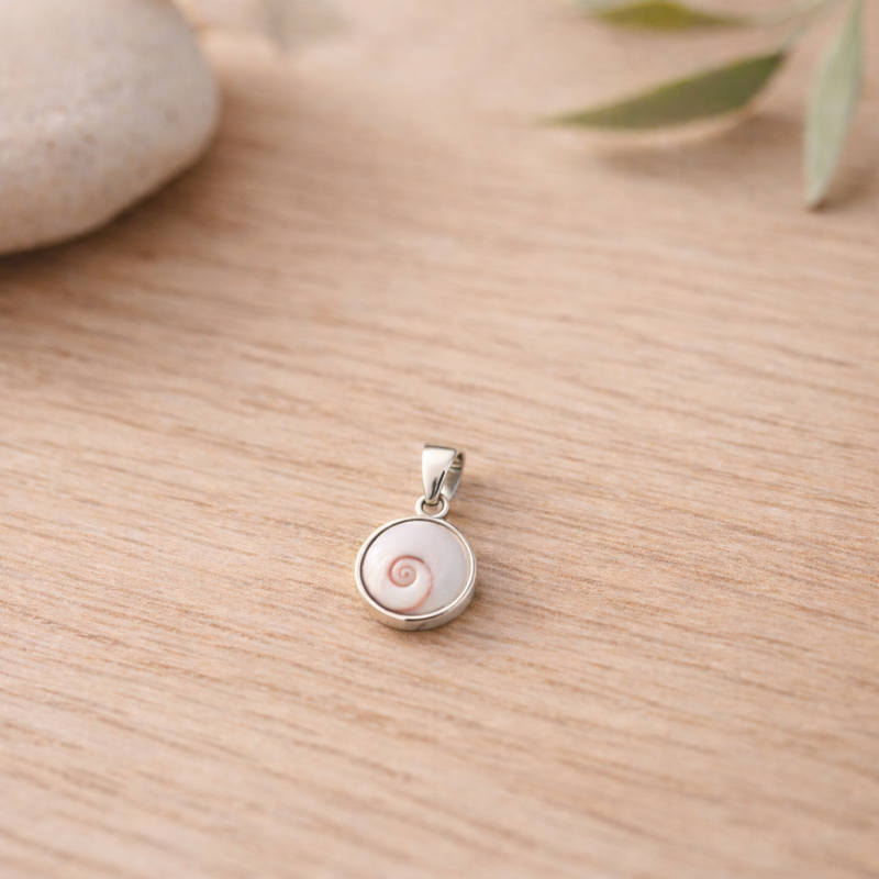 Avec sa spirale naturellement dessinée, ce pendentif Œil de Sainte-Lucie capte la lumière avec délicatesse et évoque ces instants où la mer semble déposer un secret sur le rivage. Monté sur argent 925 et sublimé par un serti fin à la finition brillante, il se porte comme un signe discret, élégant et rassurant.