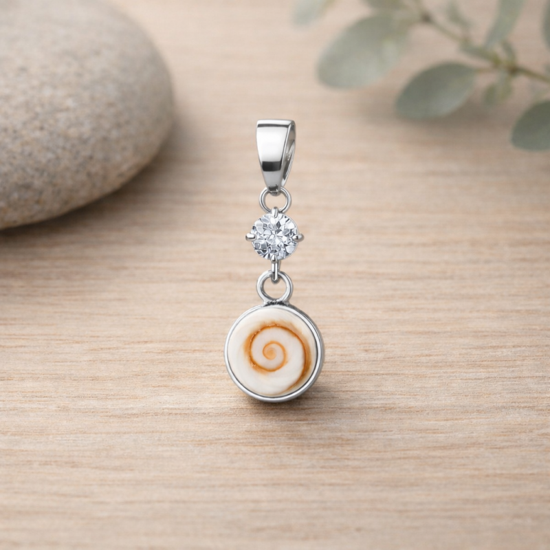 Pendentif en argent 92.5 avec un œil de sainte Lucie de Méditerranée et un strass.
