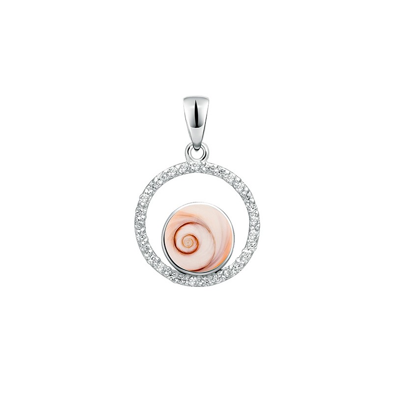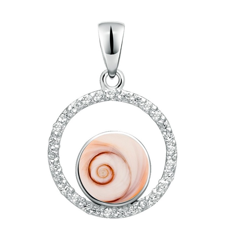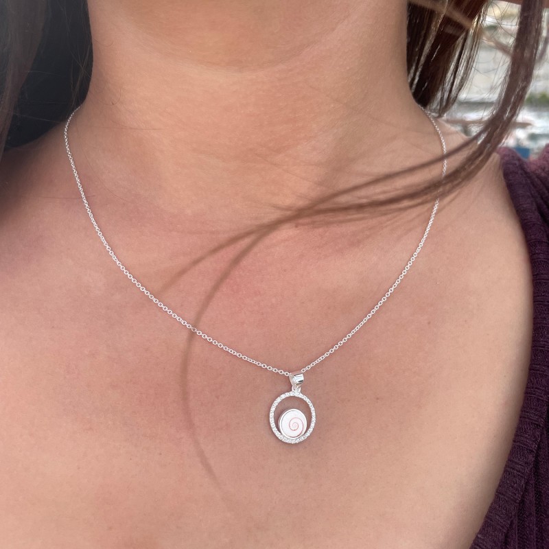 Symbole de protection et d’élégance, ce pendentif œil de Sainte-Lucie en argent sublime un coquillage naturel entouré de cristaux étincelants.