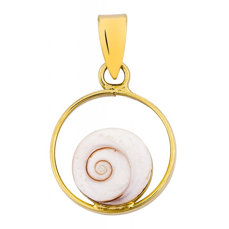 Pendentif en doré à l'or fin en forme de cercle avec un œil de saint Lucie méditerranéen posé à l'intérieur.