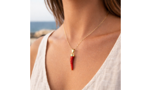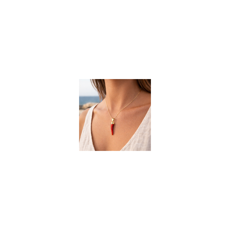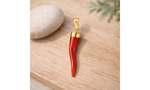 Ce pendentif corne en corail rouge est un véritable porte-bonheur issu des traditions méditerranéennes.
